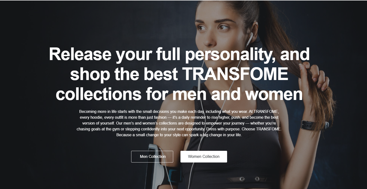 The TRANSFOME website was designed to capture the spirit of a bold, purpose‑driven fashion brand that aims to transform style and life alike. From the moment visitors land, they’re greeted by a compelling brand story that emphasizes sustainability, authenticity and meaningful impact.