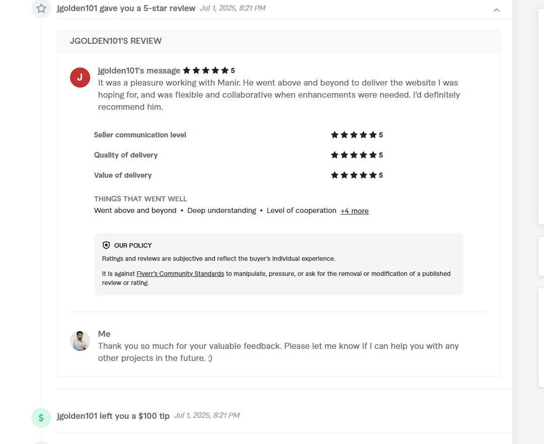 I specialize in building modern, responsive WordPress websites using Elementor Page Builder, creating pixel-perfect designs from Figma or PSD files. I customize widgets, apply global styles, and ensure a seamless experience across all devices.